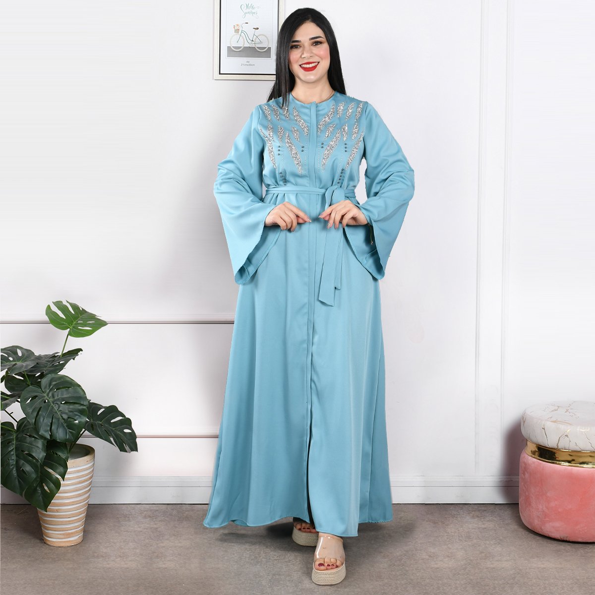 - أحجار الراين: تفاصيل لامعة ومتألقة تضيف لمسة من الأناقة إلى التصميم، مما يجعل العباية ملائمة للمناسبات الخاصة.